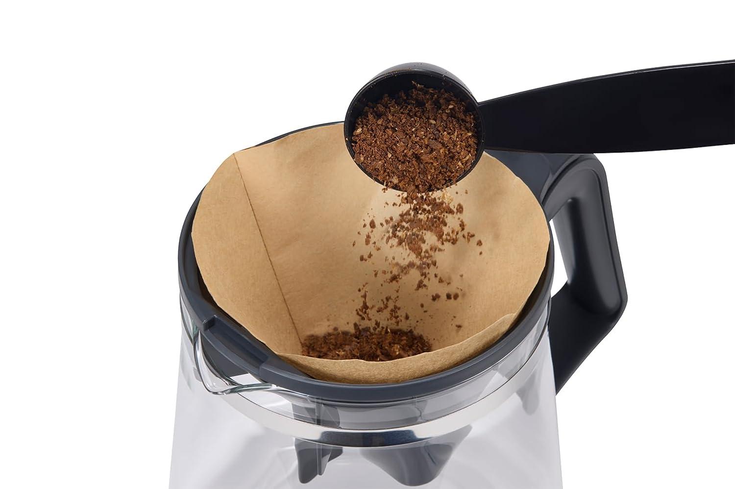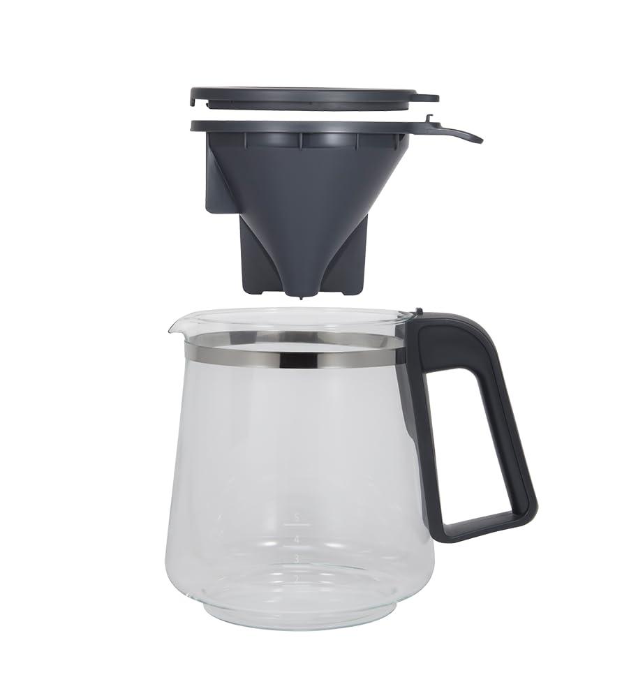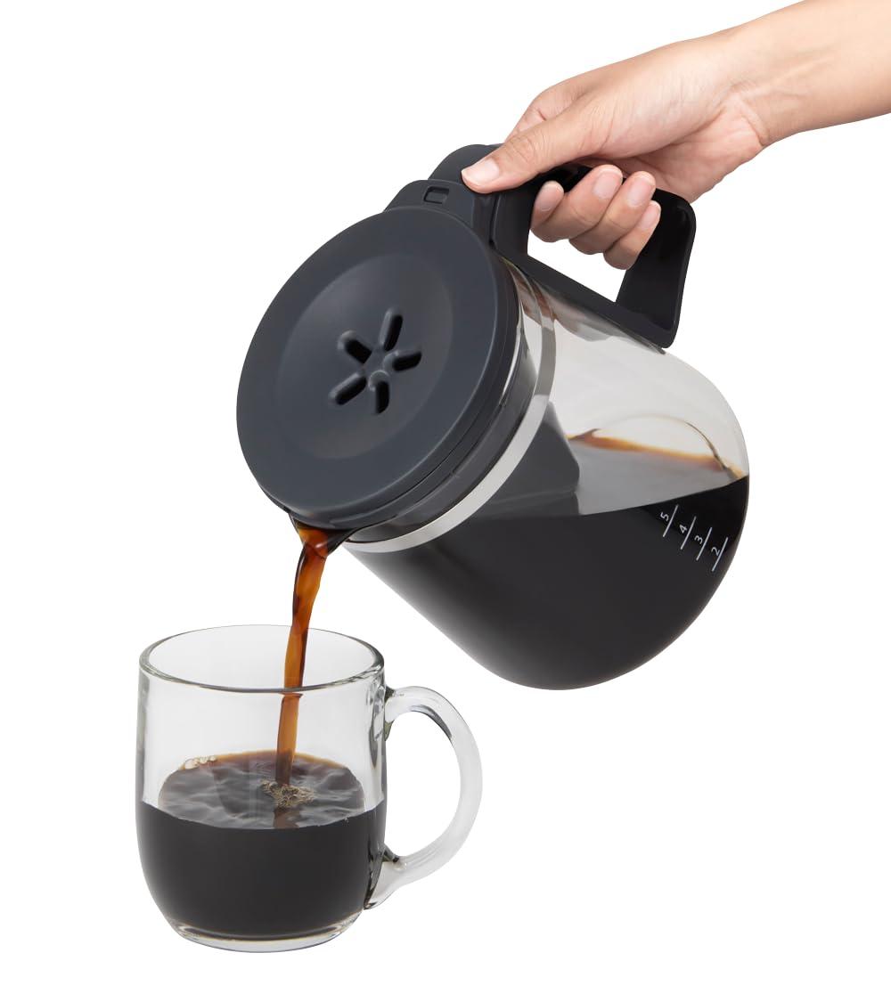 The ZUTTO® Coffee Maker features a removable water tank and water filter that lasts up to 2 years under normal use for clean operation. It brews up to 5 cups of coffee and features automatic keep warm. Iced coffee water measure lines adjust the water-to-coffee ratio for a stronger coffee that doesn't taste watered down when chilled with ice. Glass carafe is ergonomic with an easy-grip handle and knuckle guard for extra protection. Compact design and ideal for small spaces. Coffee maker is free of PFAS (including PTFE and PFOA) and BPA on all areas that come into contact with food or beverages.