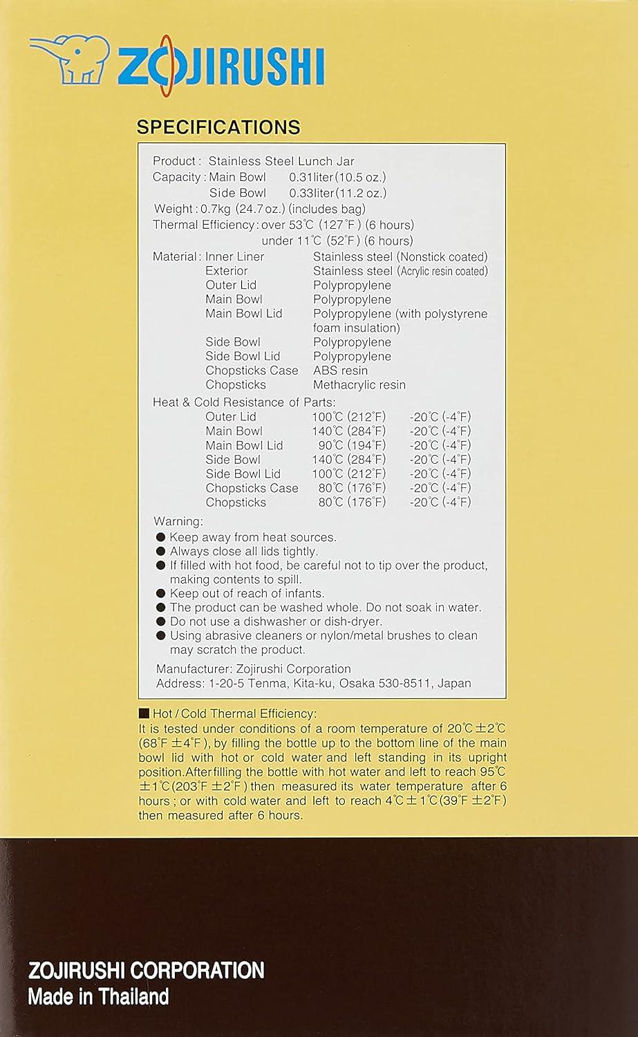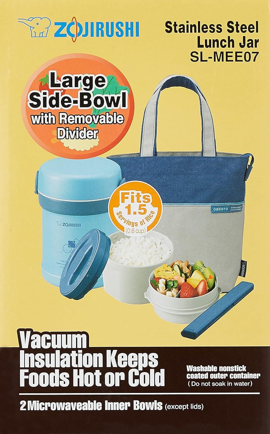 The Ms. Bento® Stainless Lunch Jar contains a washable container, two microwaveable inner bowls, chopsticks, chopsticks holder and easy-to-carry bag. Its vacuum insulation keeps foods hot or cold for hours.